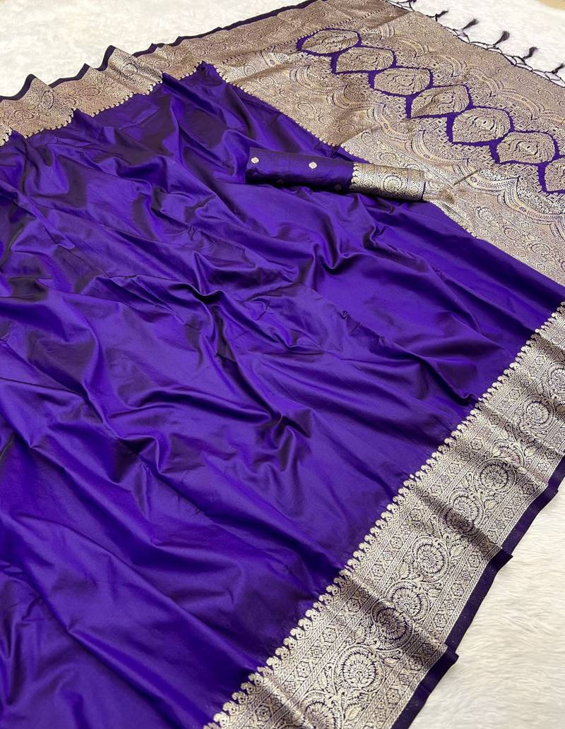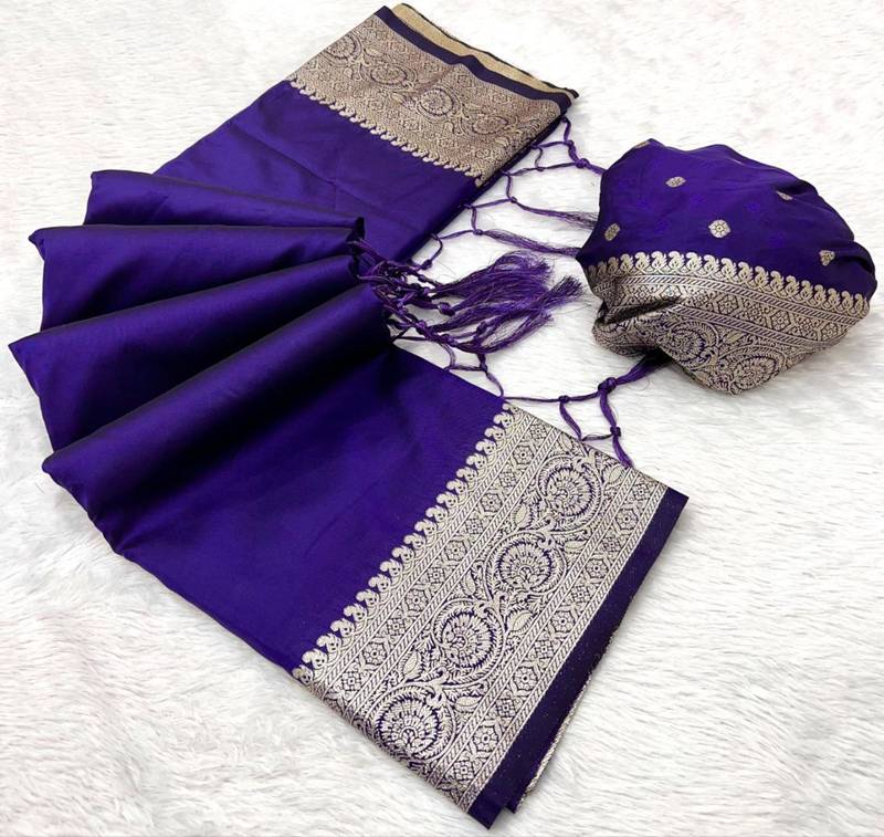 | Product Name | Violet Soft Banarasi Silk Fabric Saree With Natural Zari Weaving In Gala Border | |