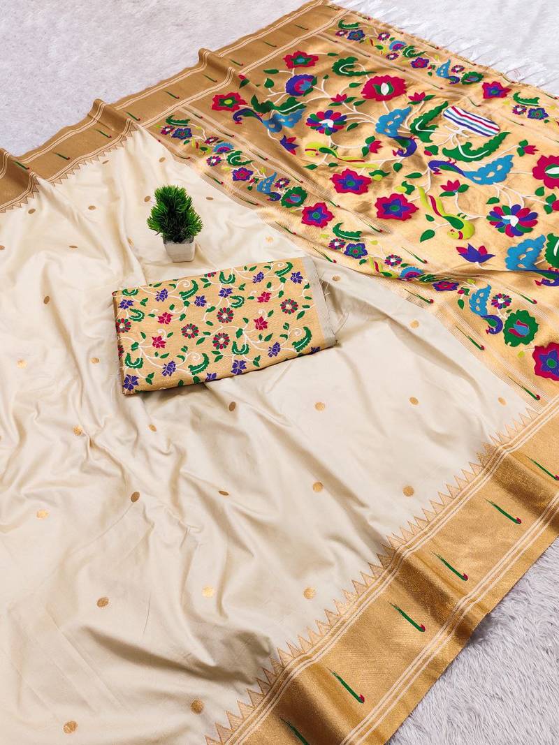 White faux banarasi silk saree with paithani rich weaved pallu and blouse