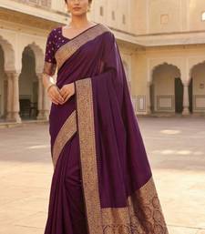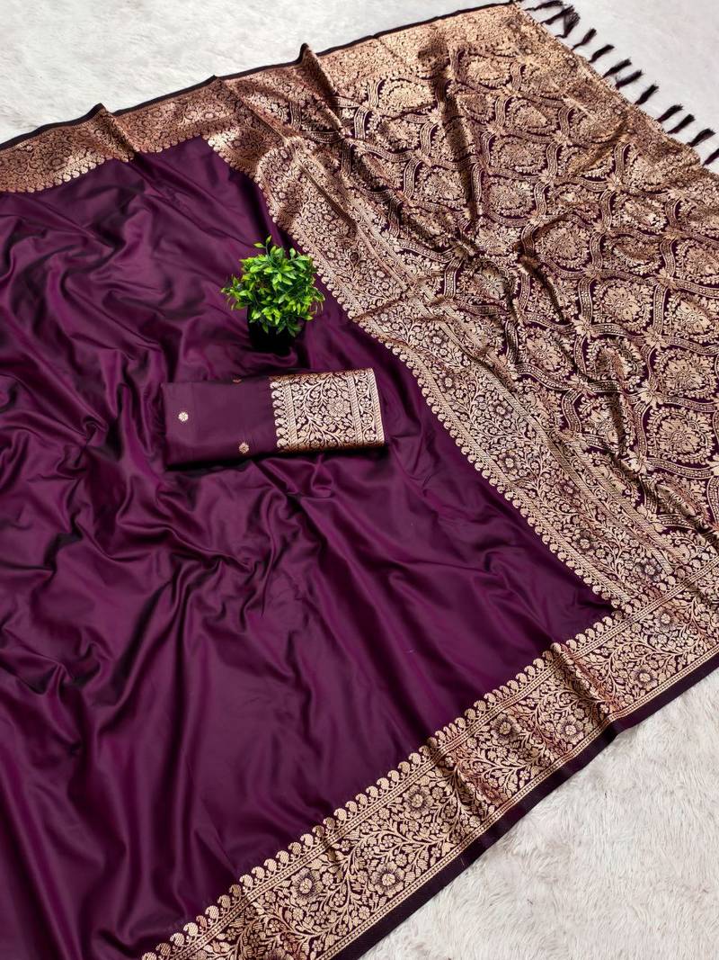 Wine soft banarasi silk fabric saree with natural zari weaving in gala border