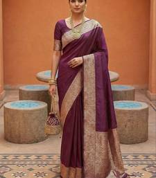 Wine soft banarasi silk fabric saree with natural zari weaving in gala border