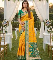 | • | Saree | : | Color- Yellow / Fabric- Faux Art Silk |