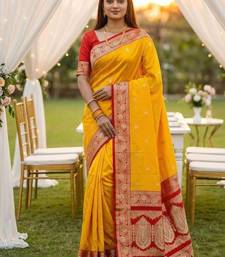| • | Saree | : | Color- Yellow / Fabric- Faux Banarasi |