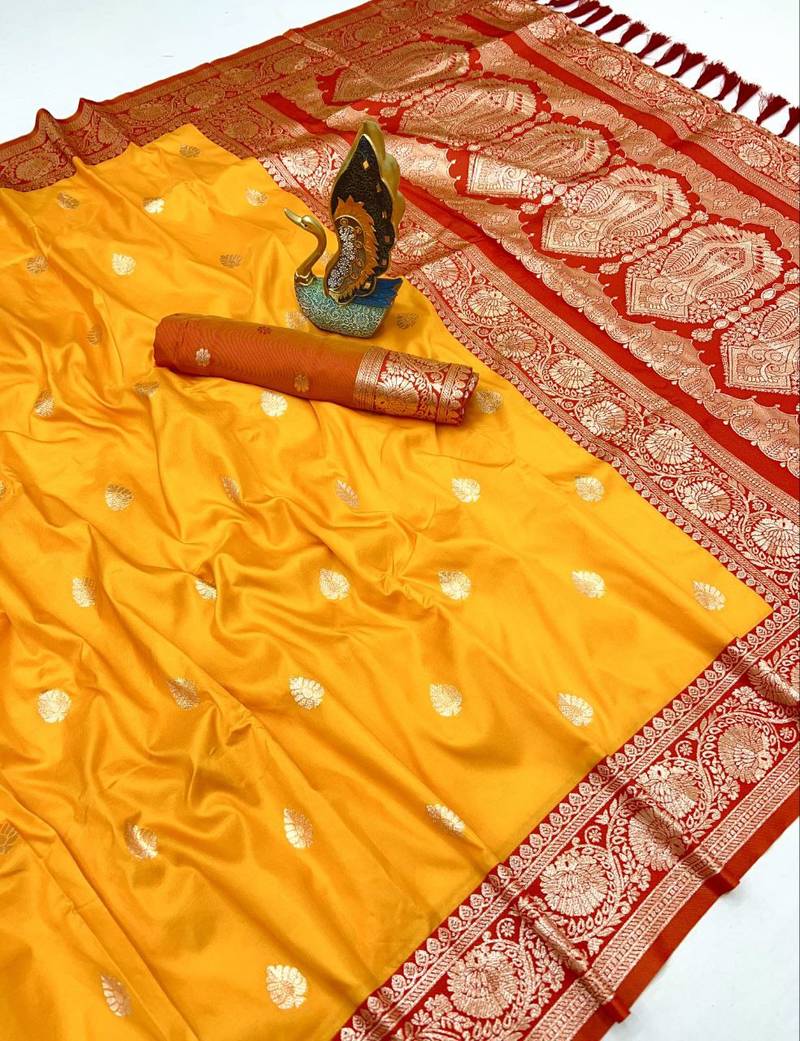 | Product Name | Yellow Soft Silk Blend Saree With Zari Weaving Meenakari Design | |