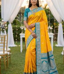 | • | Saree | : | Color- Yellow / Fabric- Faux Banarasi |