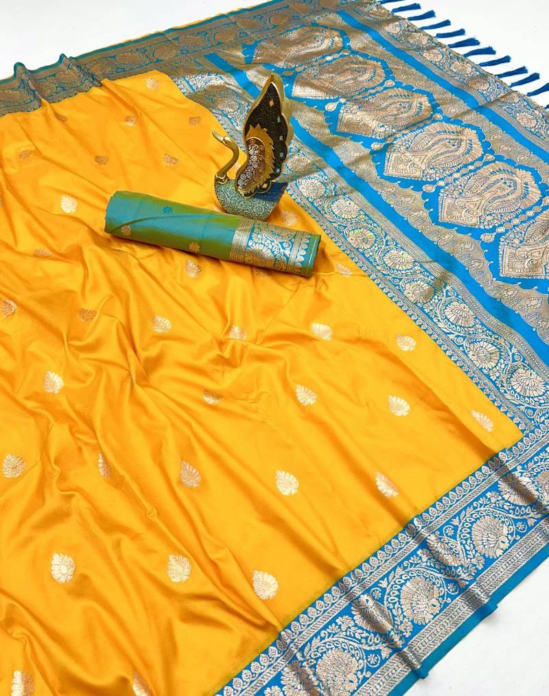 | Product Name | Yellow Soft Silk Blend Saree With Zari Weaving Meenakari Design | |