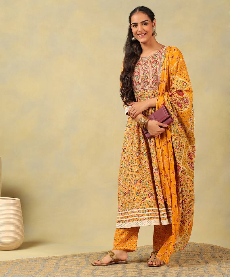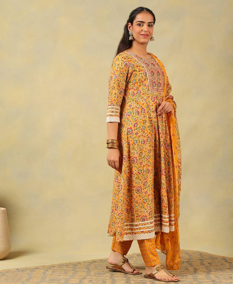 | Product Name | Amara Mustard Floral Anarkali Suit Set | |