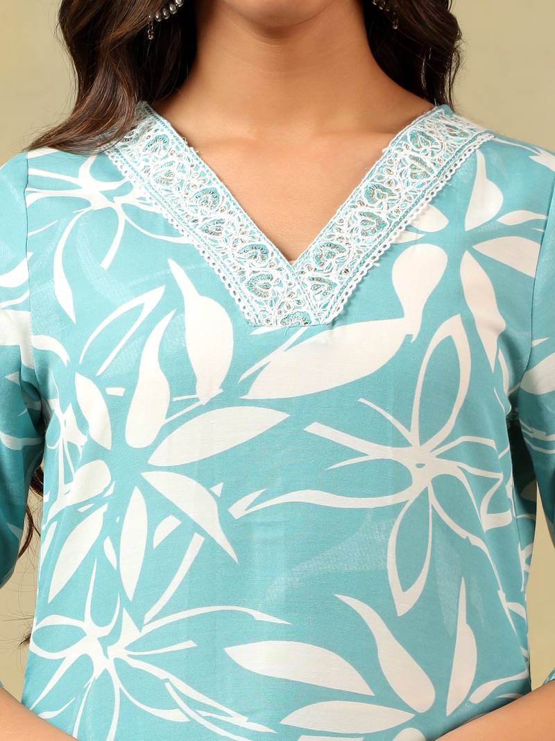 | Product Description | Invite A Sense Of Refreshing Elegance Into Your Ethnic Collection With The Diya Set, Featuring A High Impact Seafoam Leaf Silhouette Print Usp. This Serene Ensemble Is Rendered In A Cooling Seafoam Green Hue And Decorated With Large, Artistic White Leaf Motifs That Flow Across The Straight Cut Kurta. The Look Is Framed By A Crisp White Embroidered V Neckline Border With Intricate Floral Lace Detailing. It Is Paired With Coordinating Micro Patterned Seafoam Trousers And A Matching Leaf Print Dupatta With Structured Geometric Borders For A Cohesive And Tranquil Daytime Look. |