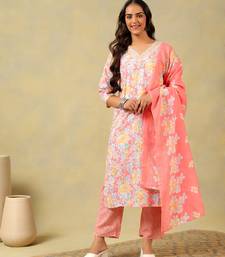 | Product Description | Infuse Your Ethnic Wardrobe With Warmth And Softness With The Kyra Set, Featuring A Delightful Peach Blossom Floral Print Usp. This Elegant Ensemble Showcases A Dense Arrangement Of Sun Kissed Yellow And Ivory Botanical Blooms Across A Soft Peach Pink Canvas. The Look Is Elevated By A Shimmering V Neckline Border With Intricate Needlework, Paired With Coordinated Zigzag Patterned Trousers And A Flowing, Full Print Dupatta For A Radiant And Feminine Daytime Aesthetic. |