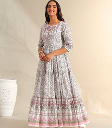 | Product Description | Step Into Effortless Elegance With The Mihika Dress, Featuring A Romantic Garden Inspired Floral Vine Print Usp. This Floor Length Dress Is Crafted In A Breathable Ivory Fabric, Beautifully Adorned With Intricate Pink And Sage Green Botanical Motifs Throughout. The Highlight Of This Piece Is Its Voluminous Tiered Silhouette, Which Provides A Graceful Flare And Movement. The Bodice Is Structured With A Contrast Piped Yoke And Decorative Button Detailing, While The Hemline Is Finished With A Bold, Multi Patterned Border For A Sophisticated, High End Look. |