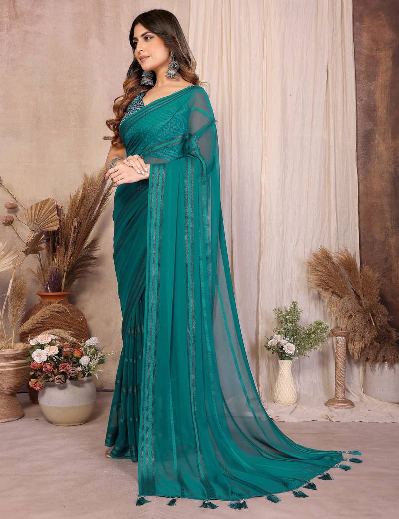 | • | Saree | : | Color- Turquoise / Fabric- Georgette |