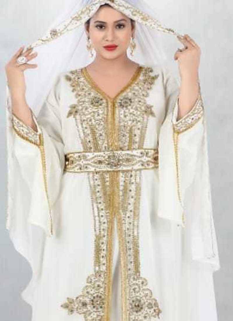 | Product Name | Elegant White & Gold Embroidered Kaftan Style Dress | |