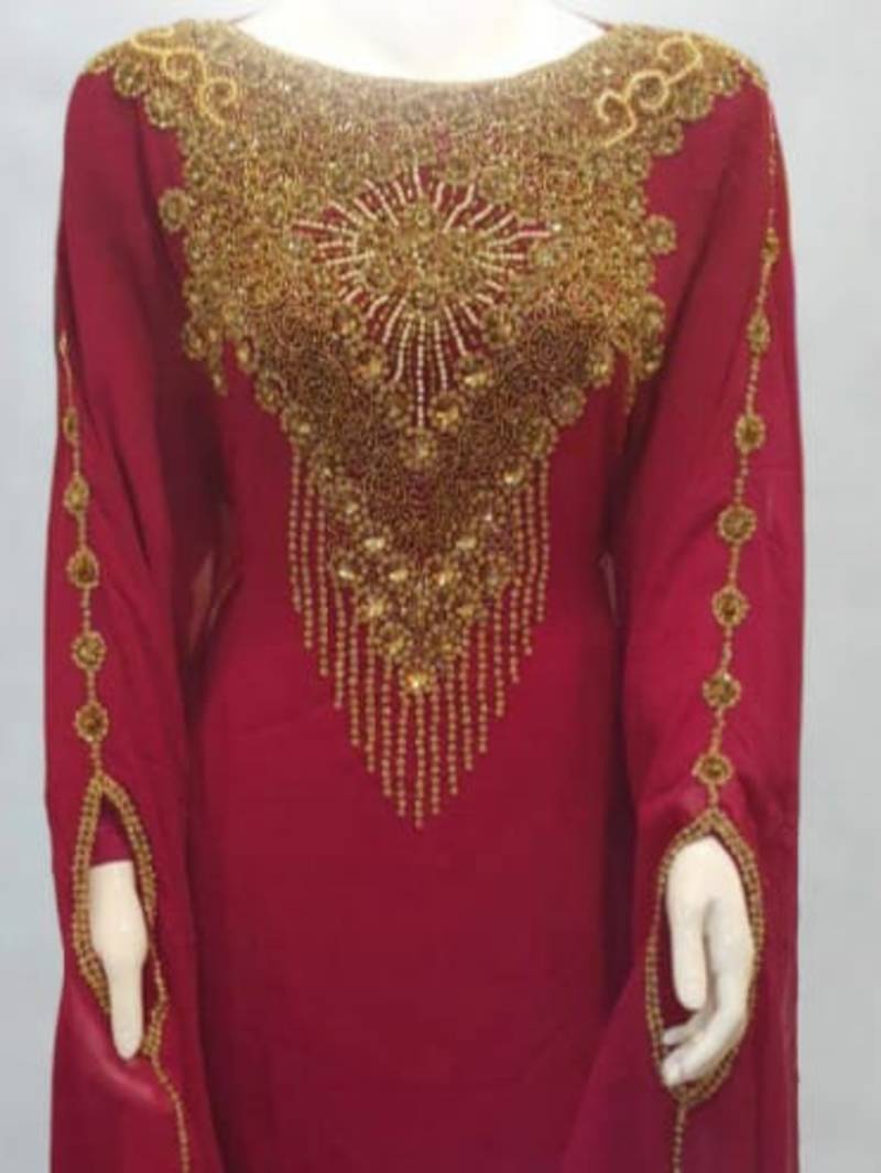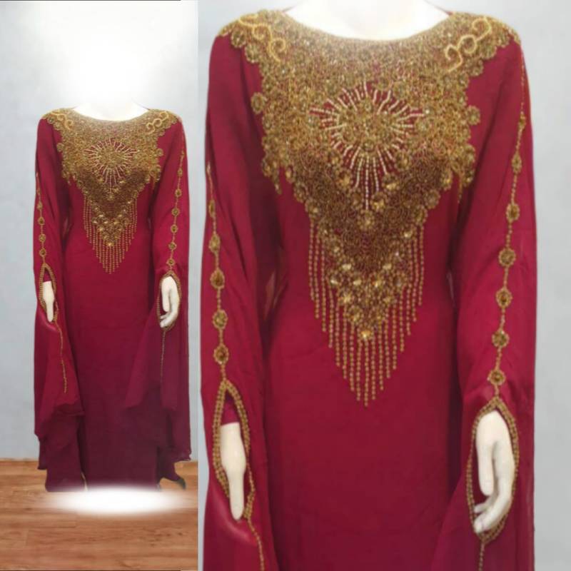 | Product Name | Luxurious Maroon Kaftan With Gold Work Stitched Dress | |
