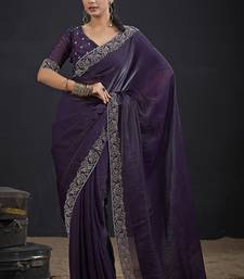 Purple color two tone silk designer wedding saree for women