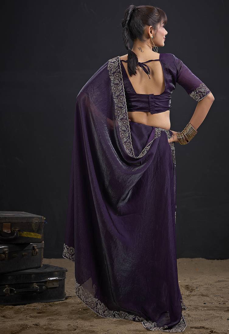 | • | Saree | : | Color- Purple / Fabric- Satin |