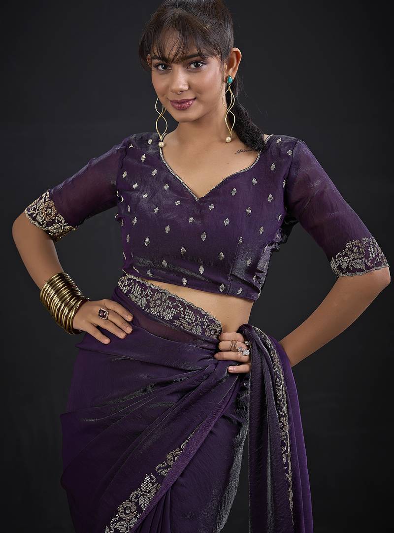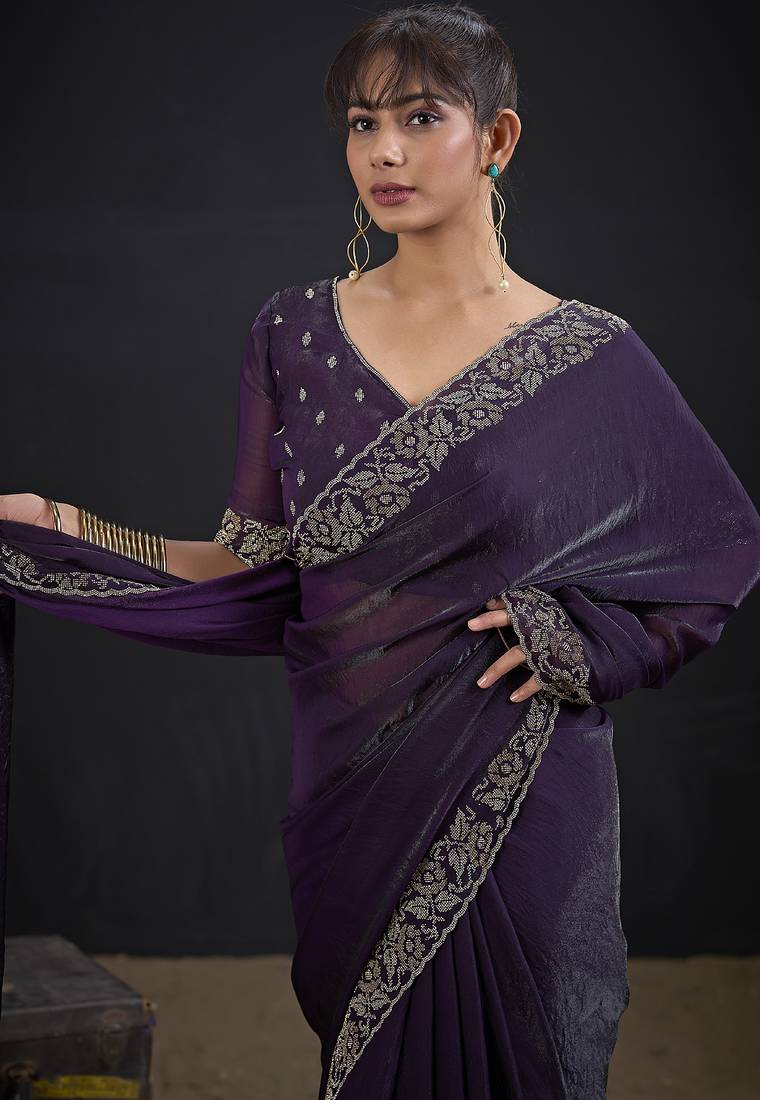 | Product Description | Get An Elegant Looking After Wearing This Purple Color Indian Bollywood Ethnic Style Traditional Wedding Two Tone Satin Silk Saree, Completed With Zarkan Resham Stone Embroidered Border Work. It Will Carry Purple Color Unstitched Two Tone Satin Silk Blouse Piece, Which Can Be Customized Up To Max 42 Indian Standard Size And Its Length 80 Cms.(Slight Variation In Color Is Possible Due To Flash Used During Photo Shoot. Blouse Shown In The Image Is Used For Photo Shoot Purpose Only. Un Stitch Blouse Piece Is Attach With Saree.) |