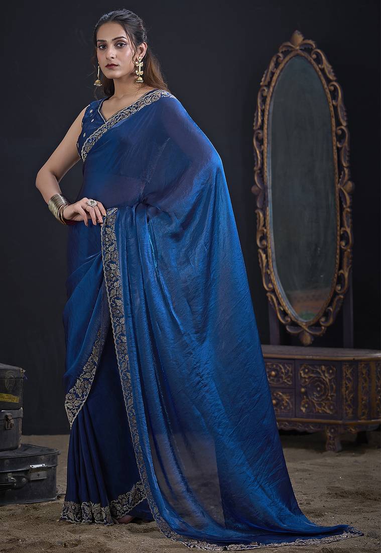 | Product Description | Get An Elegant Looking After Wearing This Teal Blue Color Indian Bollywood Ethnic Style Traditional Wedding Two Tone Satin Silk Saree, Completed With Zarkan Resham Stone Embroidered Border Work. It Will Carry Teal Blue Color Unstitched Two Tone Satin Silk Blouse Piece, Which Can Be Customized Up To Max 42 Indian Standard Size And Its Length 80 Cms.(Slight Variation In Color Is Possible Due To Flash Used During Photo Shoot. Blouse Shown In The Image Is Used For Photo Shoot Purpose Only. Un Stitch Blouse Piece Is Attach With Saree.) |