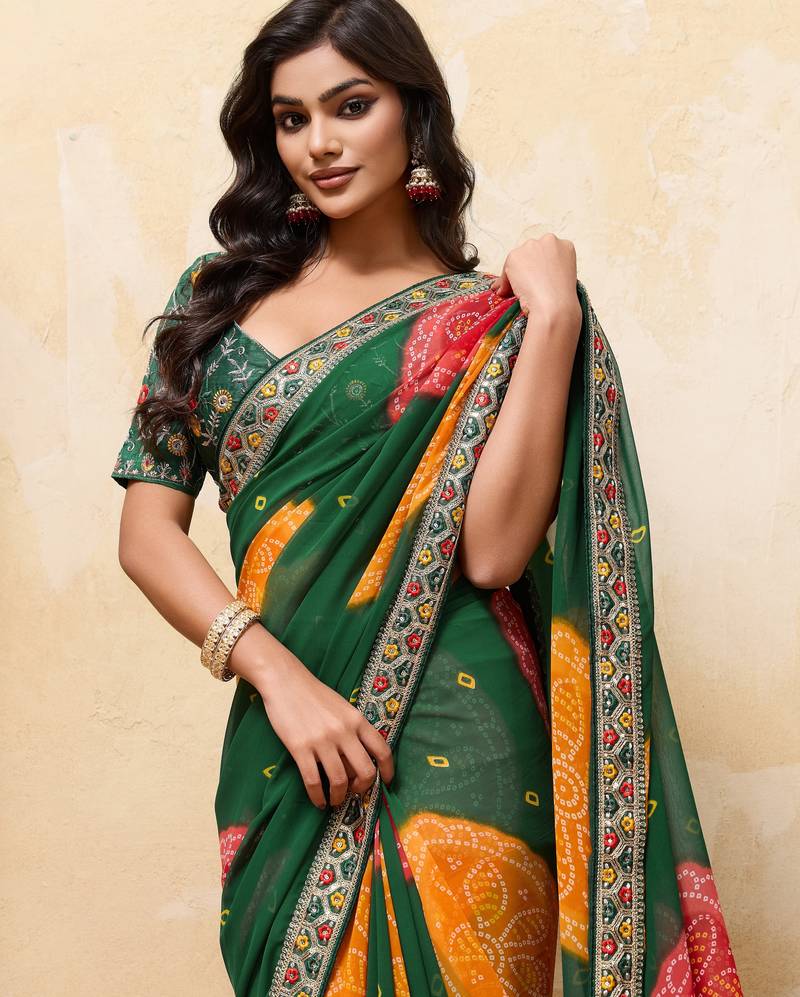 | Product Name | Appealing Green Georgette Sequins Embroidered Indaindesigner Bollywood Saree | |