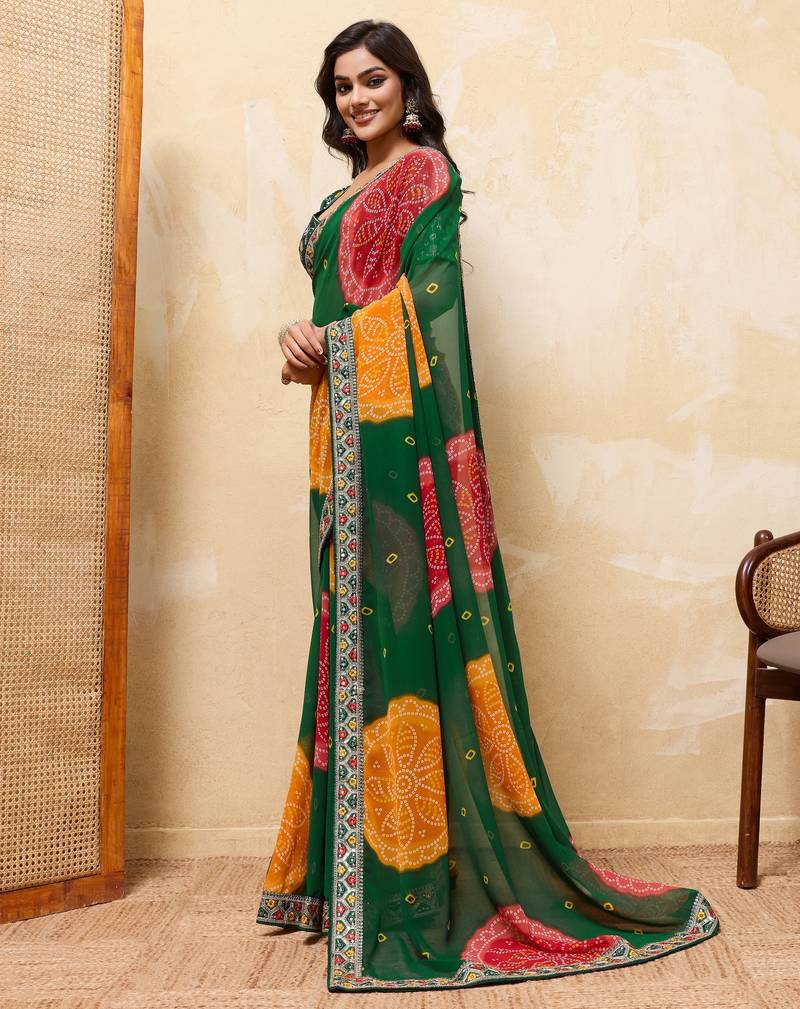 Appealing green georgette sequins embroidered indaindesigner bollywood saree