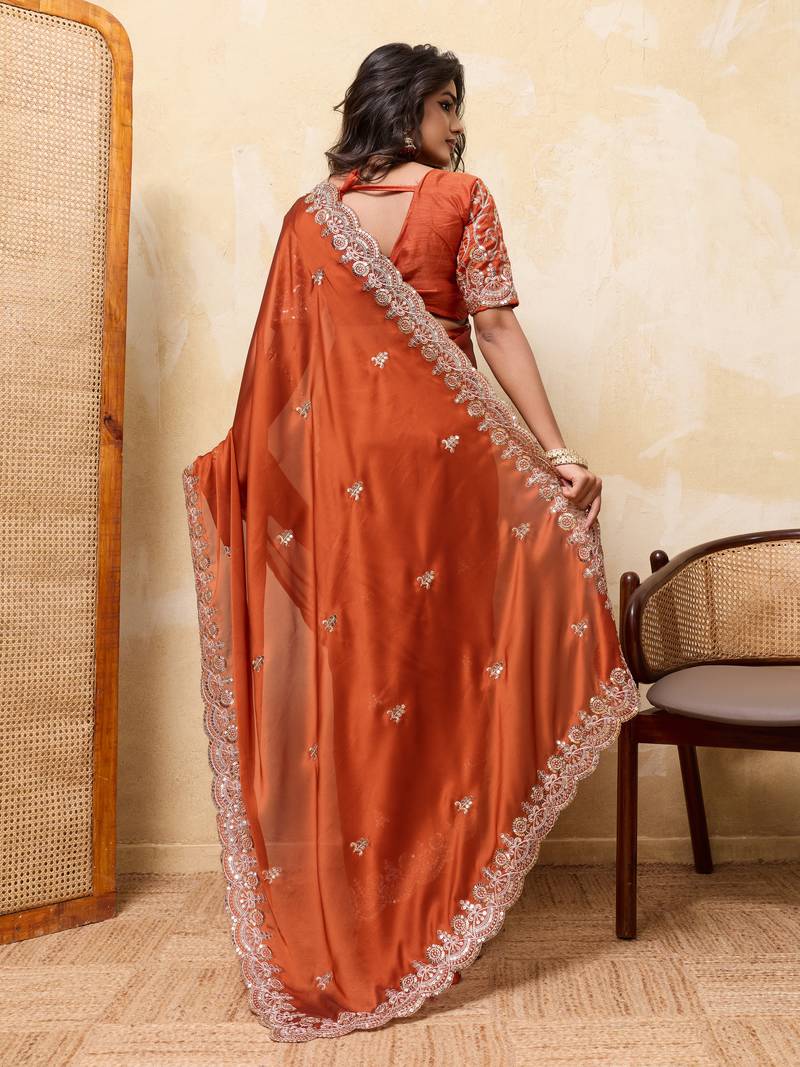 | Product Name | Attractive Orange Rangoli Silk Sequins Embroidered Indian Ceremonial Saree | |