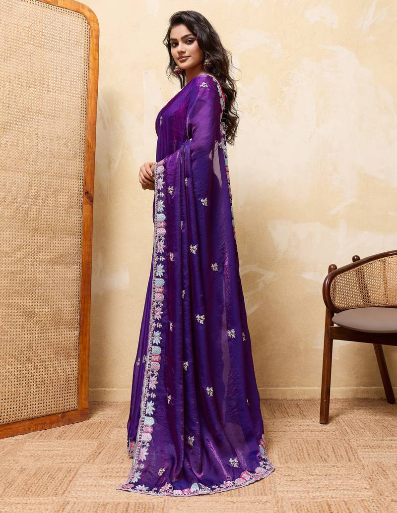 | Product Name | Colorful Blue Frendy Satin Multi Sequins Embroidered Indian Designer Wedding Saree | |