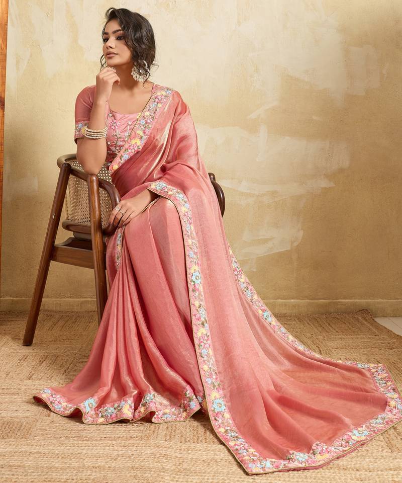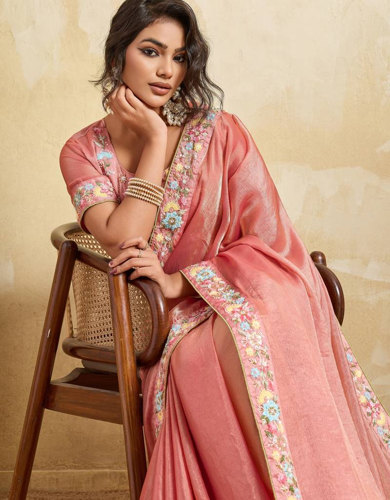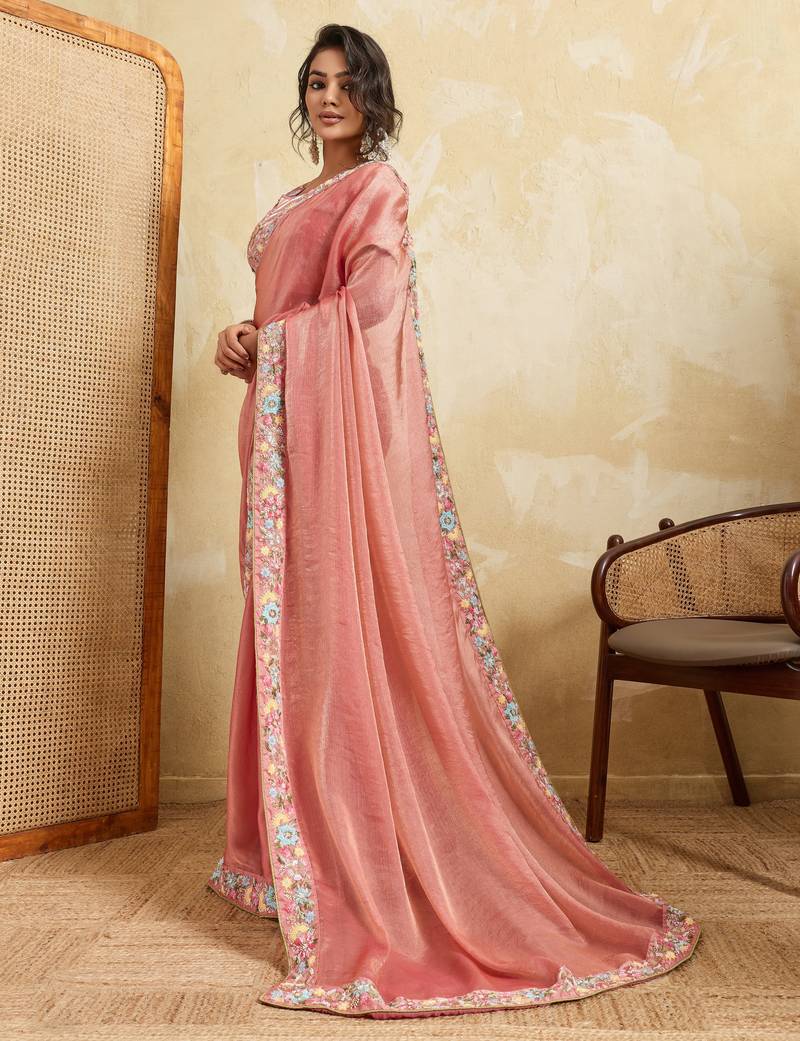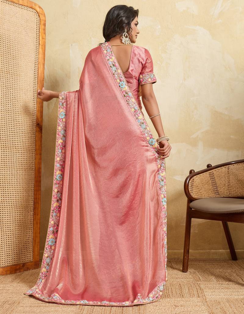 | Product Name | Delightful Pink Frendy Chiffon Sequins Embroidered With Wal Moti Work Indian Designer Party Wear Saree | |