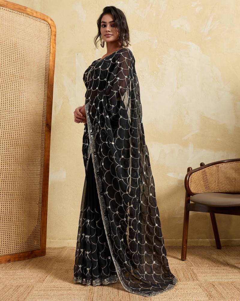 Ravishing black georgette sequins embroidered indian designer traditional sare