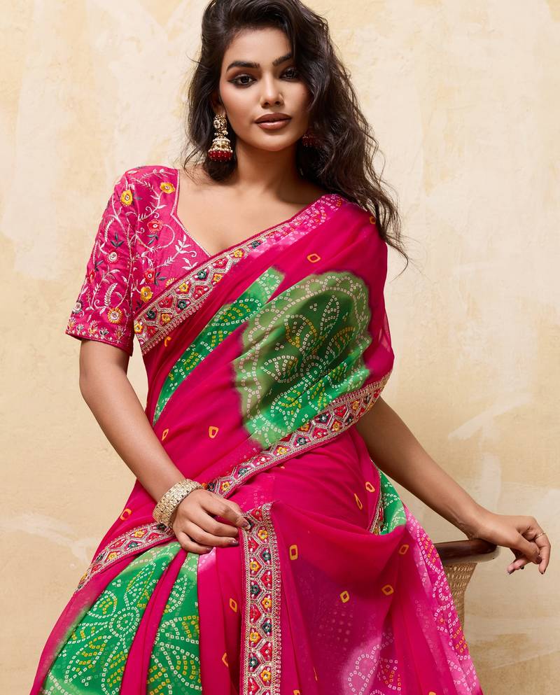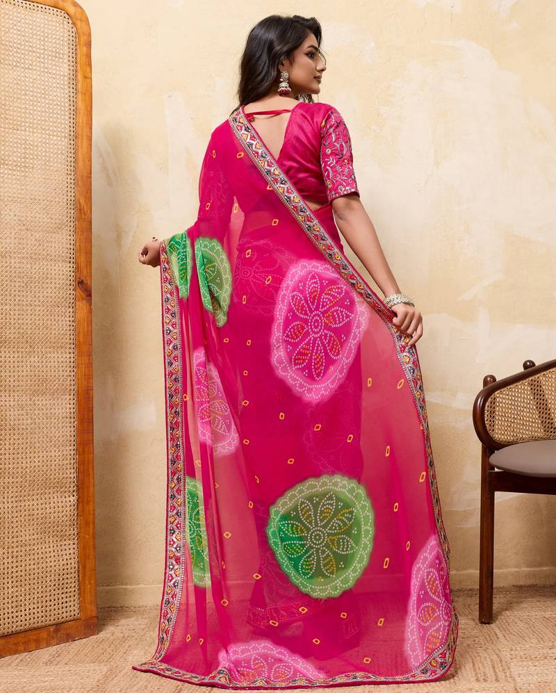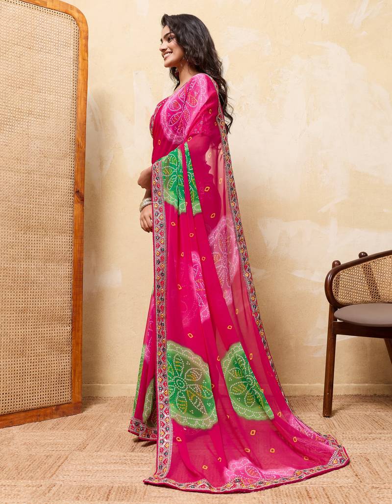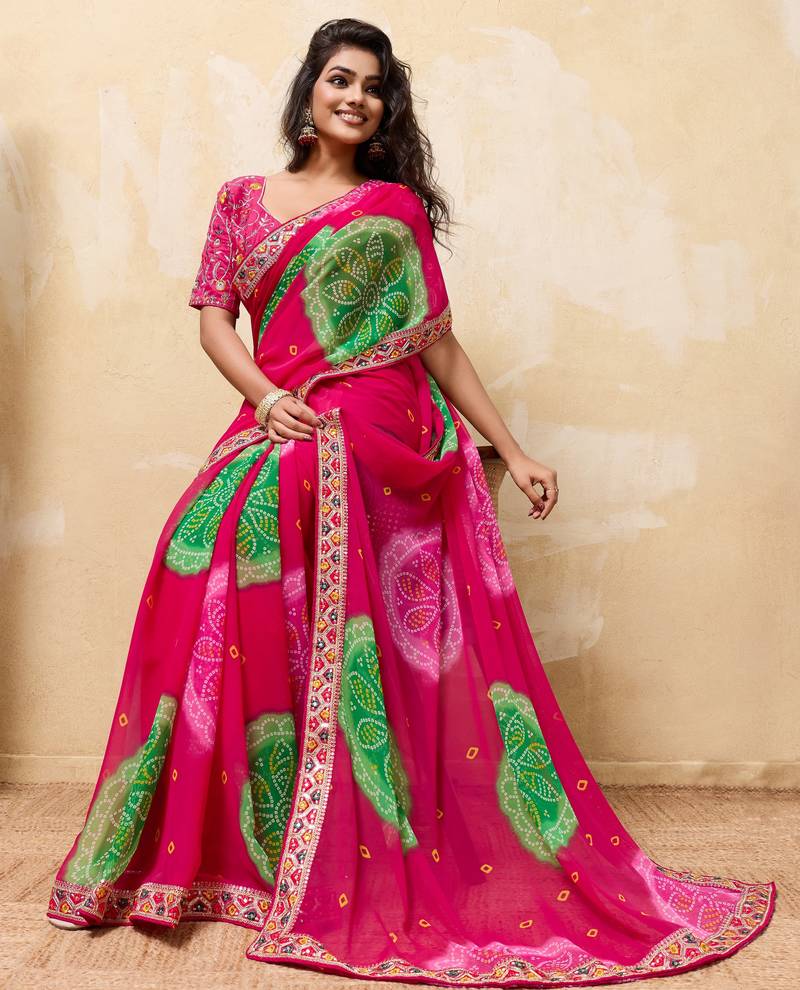 | • | Saree | : | Color- Pink / Fabric- Georgette |