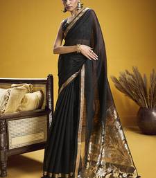 Handloom silk blend weaving black saree