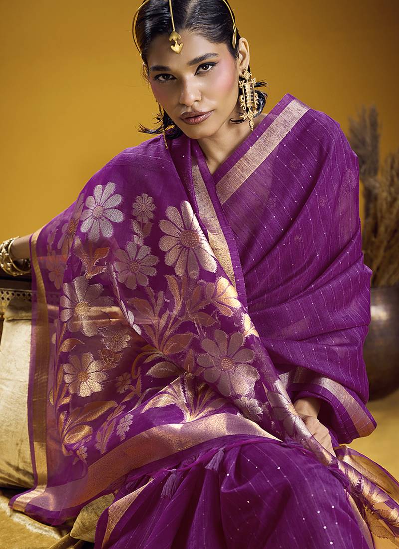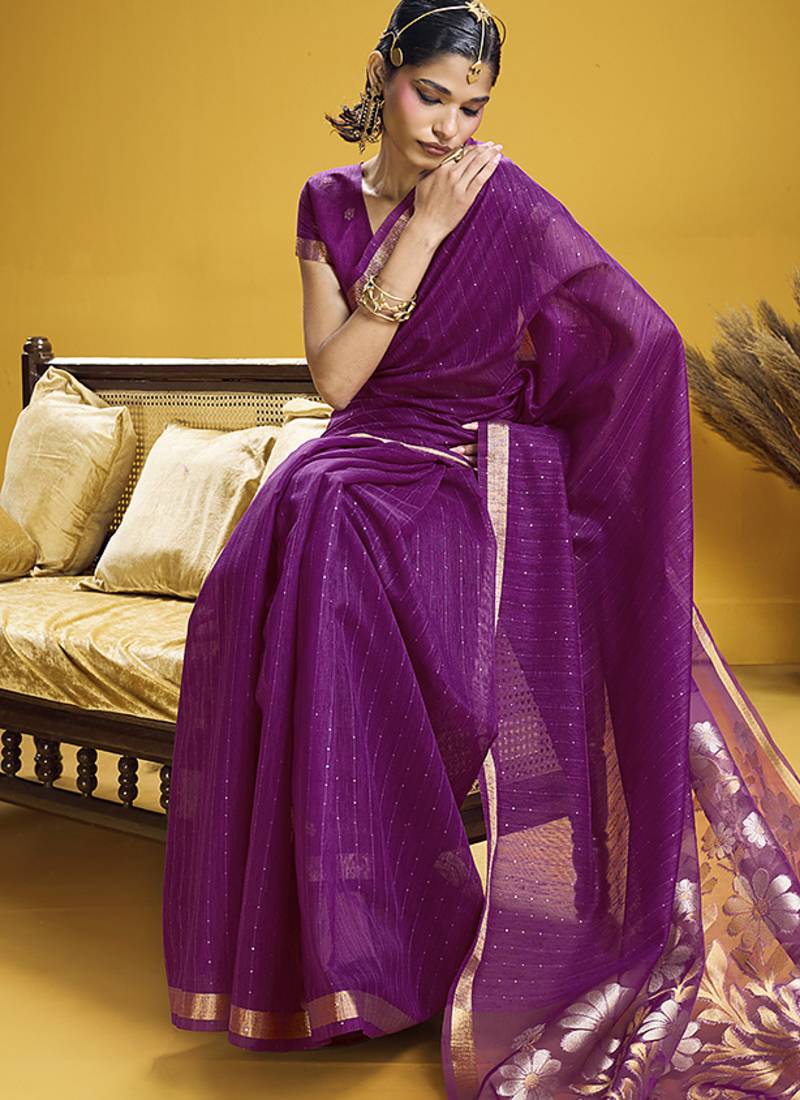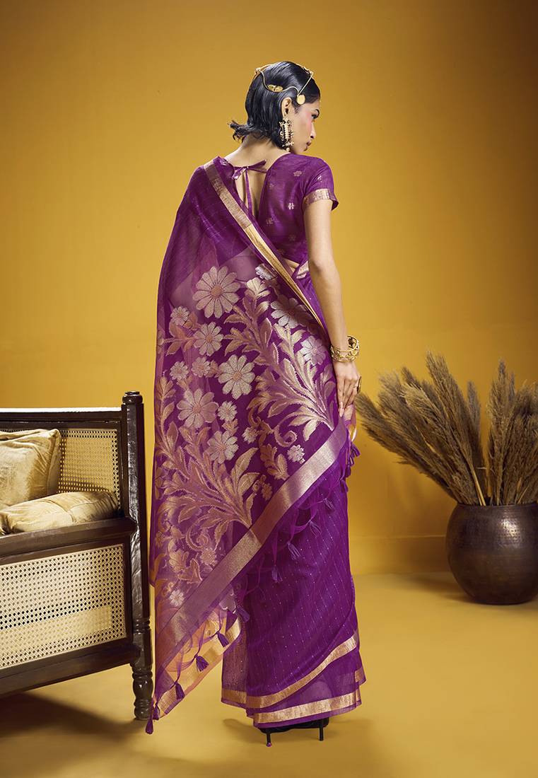 Handloom silk blend weaving purple saree