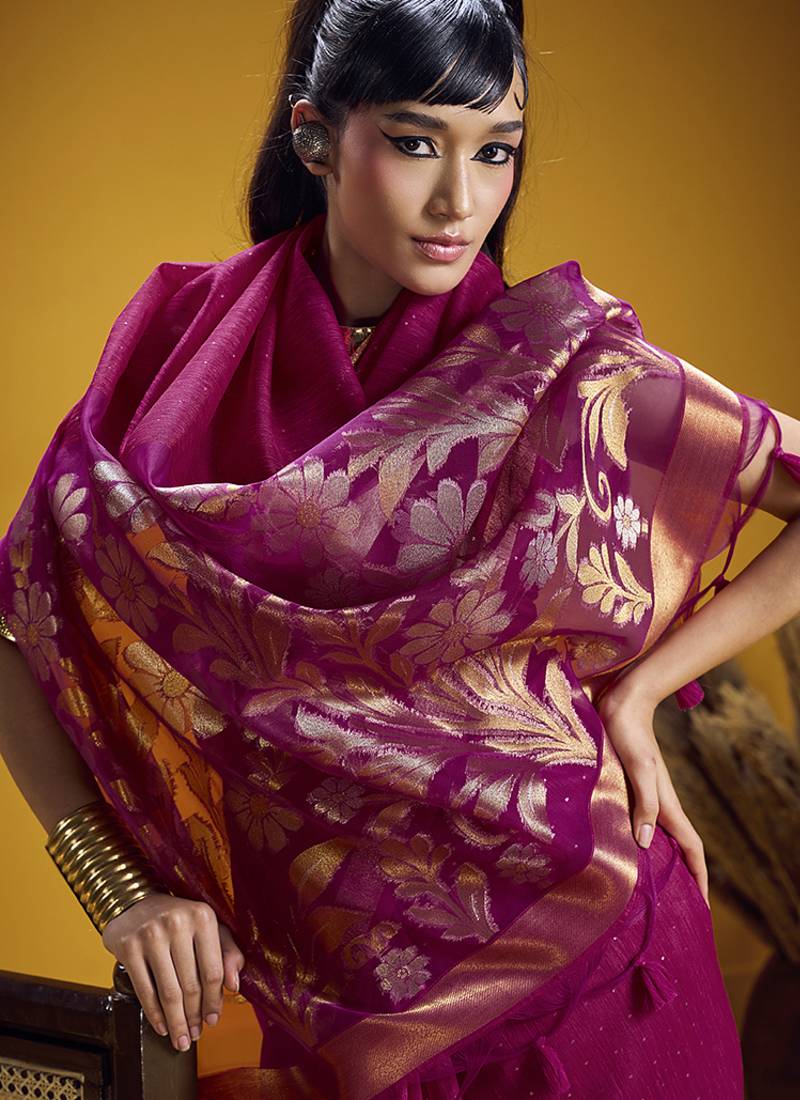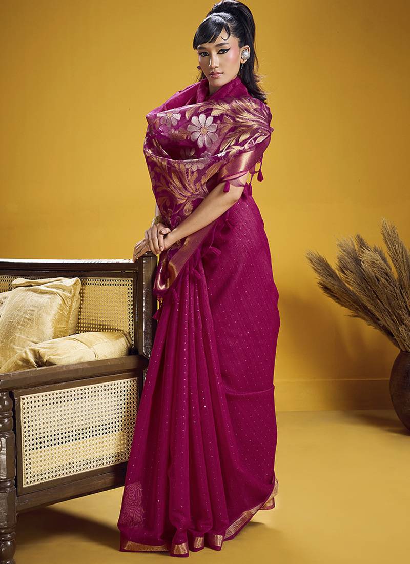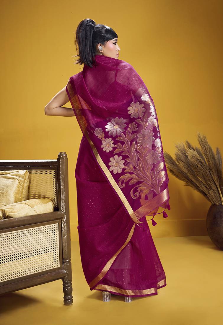 Handloom silk blend weaving rani pink saree