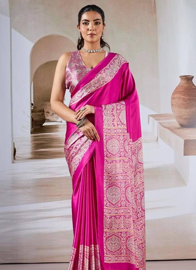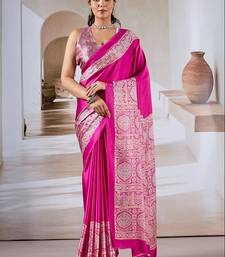 Hot pink ajrakh print modal satin saree