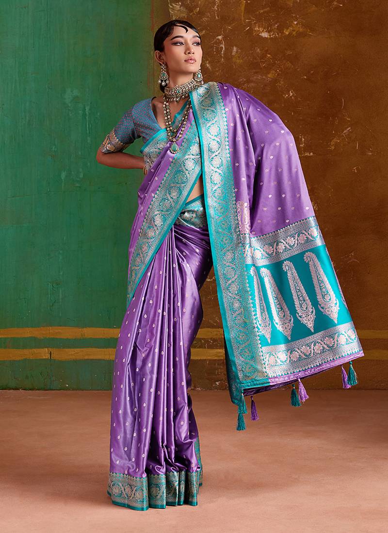 | Product Description | Add A Vibrant Burst Of Color To Your Wardrobe With This Lavender Handloom Silk Blend And Satin Traditional Saree. The Brilliant Attire Creates A Dramatic Canvas With Amazing Weaving Work. Comes With Unstiched Blouse. (Slight Variation In Color, Fabric & Work Is Possible. Model Images Are Only Representative.) |