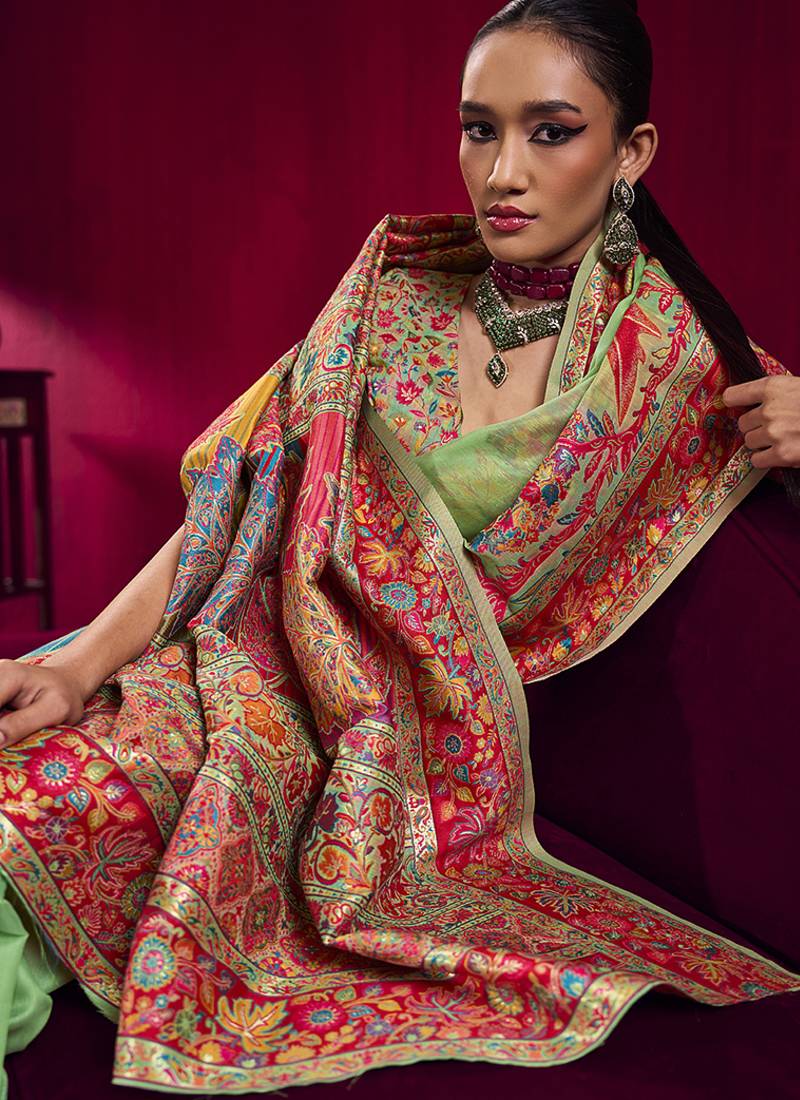| Product Name | Light Green Handloom Weaving Pashnima Silk Blend Saree | |