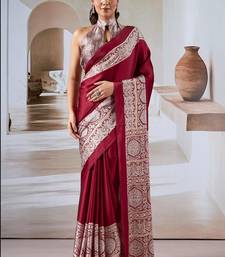 Maroon ajrakh print modal satin saree