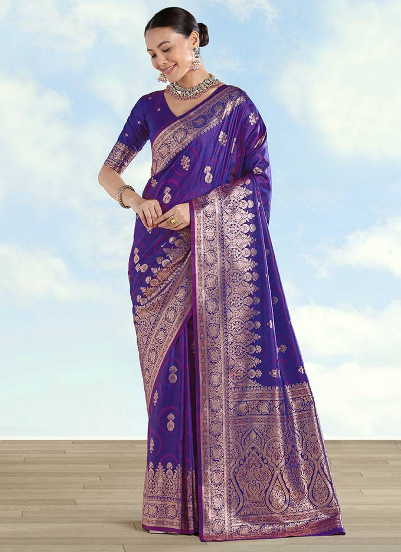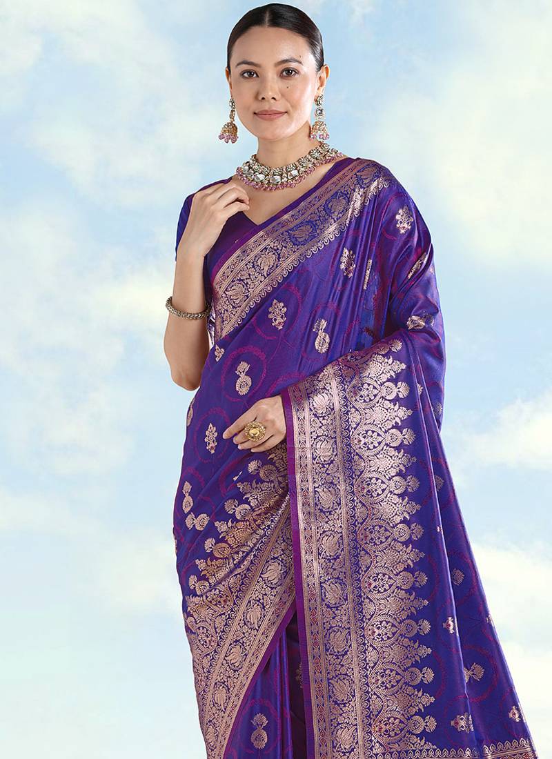 Purple banarasi silk zari woven saree with dupatta
