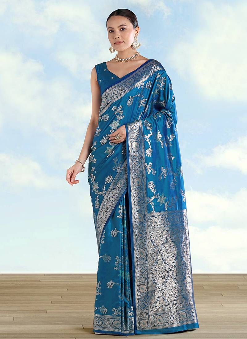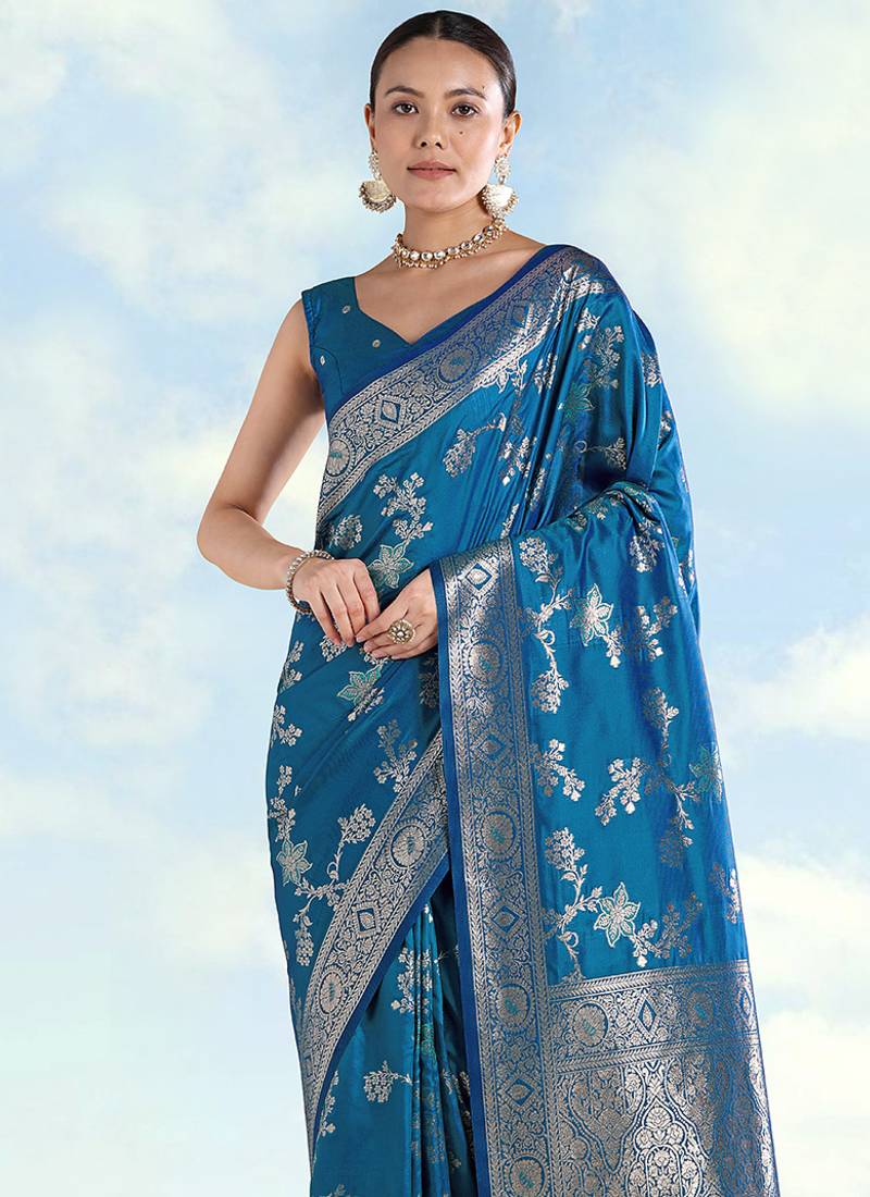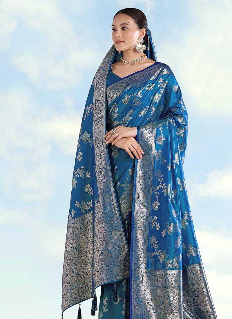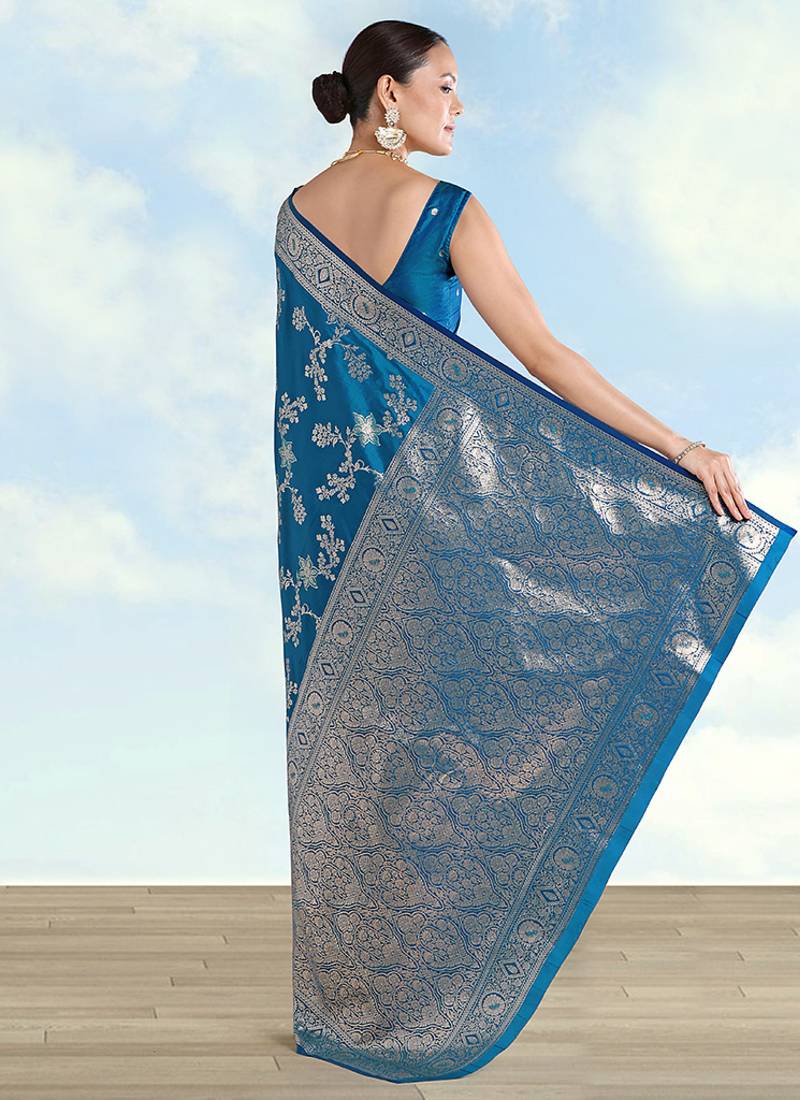 | Product Description | Teal Blue Banarasi Silk Zari Woven Traditional Saree. This Gorgeous Attire Is Displaying Some Amazing Woven Done With Fancy Zari Woven Dupatta. Comes With Matching Blouse Perfect For Festive And Traditional Occasions. |