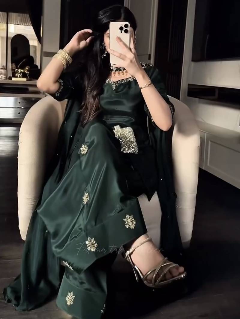 *Farshi Salwar Fabric*: Heavy Natural Crep Silk With Embroidery Work.