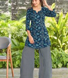 | Product Name | Navy Blue Leaf Print Poly Cotton Fusion Wear Co Ord Set | |