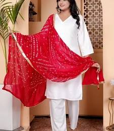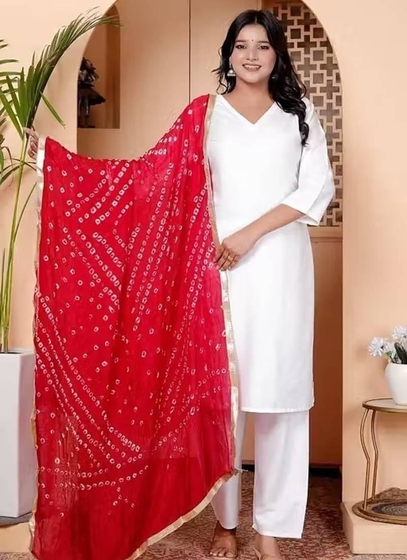 | Product Description | "Women’s Solid White Rayon Kurta With Vibrant Red Bandhani Dupatta Set