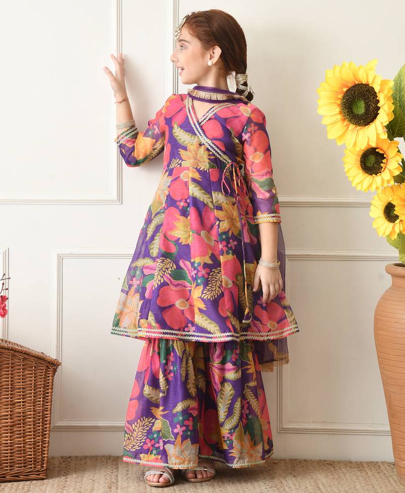 | Product Name | Girls Purple Floral Angrakha Style Sharara Set With Dupatta Festive Ethnic Wear For Girls Ilksd24 | |