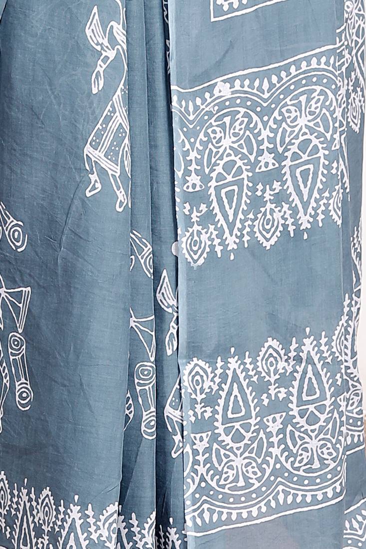 Women blue pure cotton printed bandhej ehtnic saree aay-93