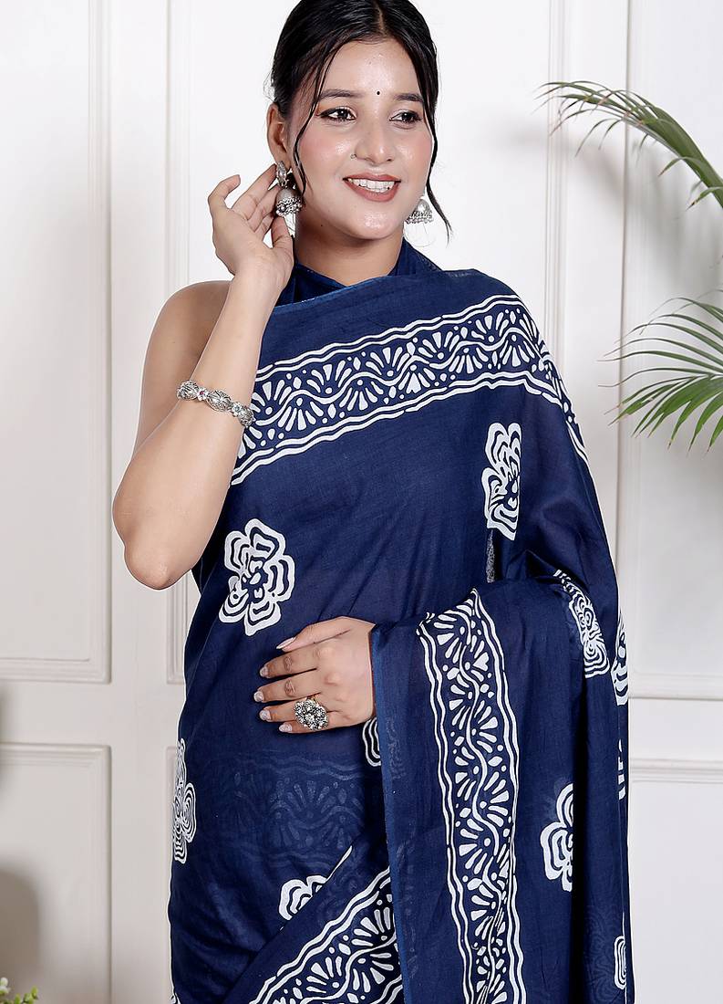 | Product Name | Women Blue Pure Cotton Printed Bandhej Ehtnic Saree Aay 99 | |