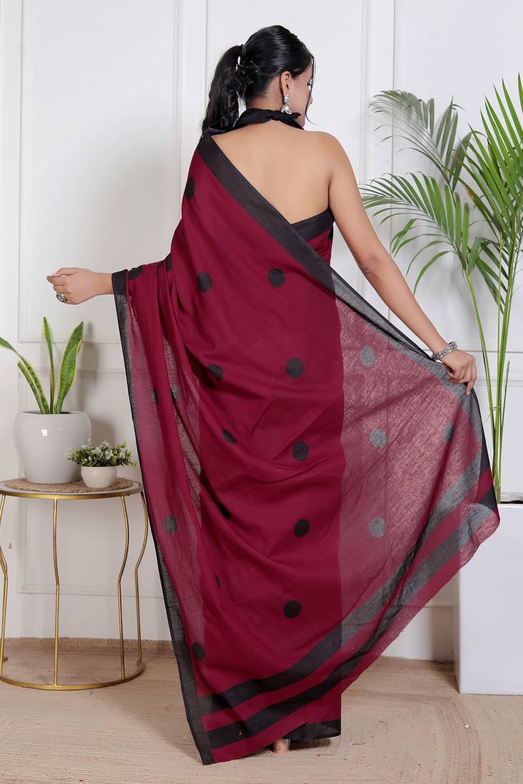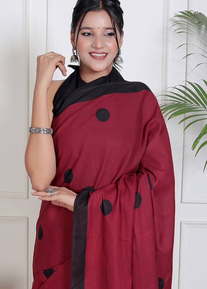 | • | Saree | : | Color- Maroon / Fabric- Pure Cotton |
