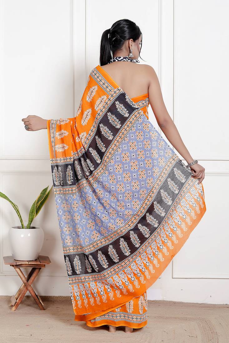 | Product Name | Women Orange Pure Cotton Printed Bandhej Ehtnic Saree Aay 61 | |