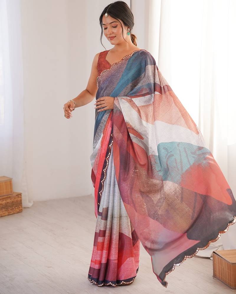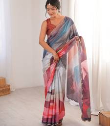 Women party wear digital print heavy chinnon saree with un sttiched blouse