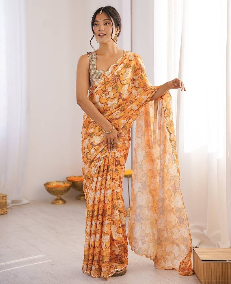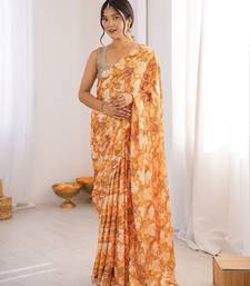 Women party wear digital print heavy chinnon saree with un sttiched blouse