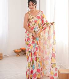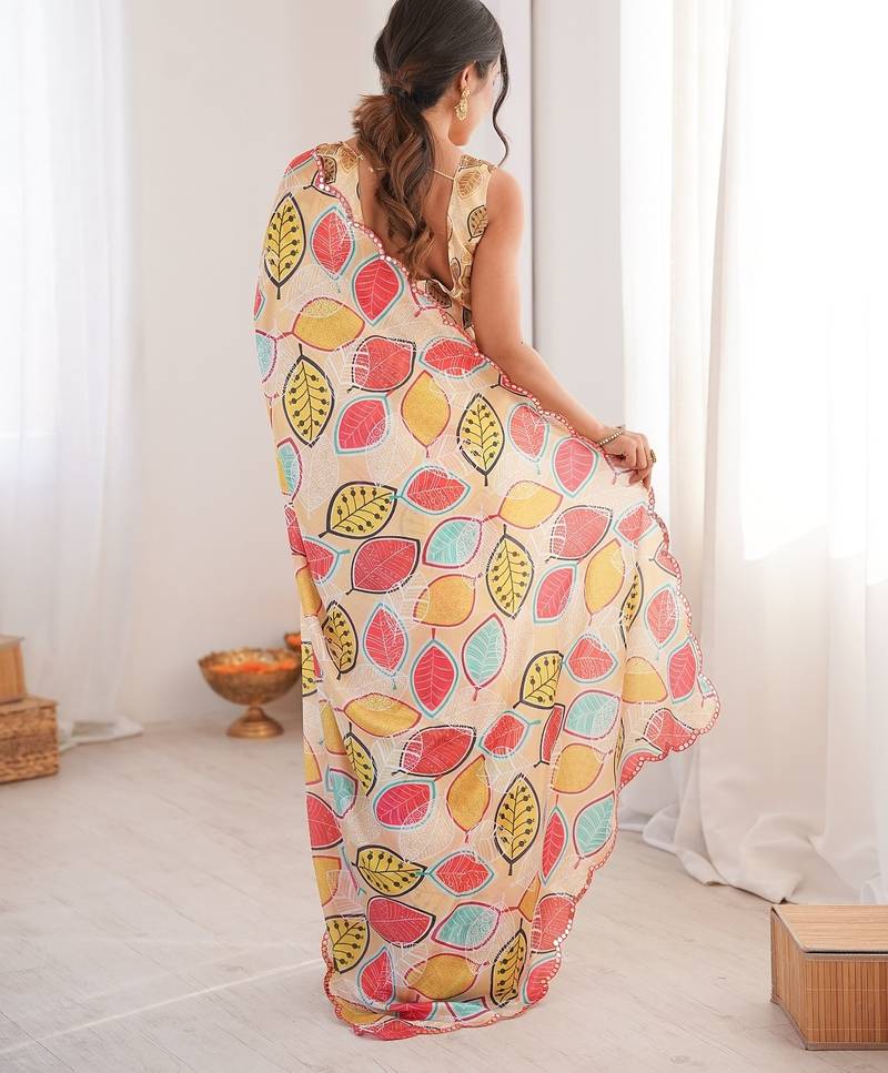 Women party wear digital print heavy chinnon saree with un sttiched blouse