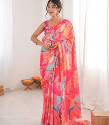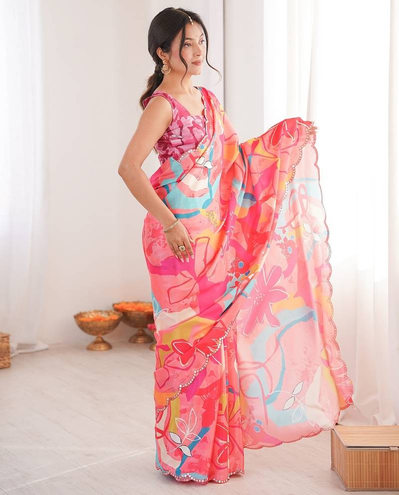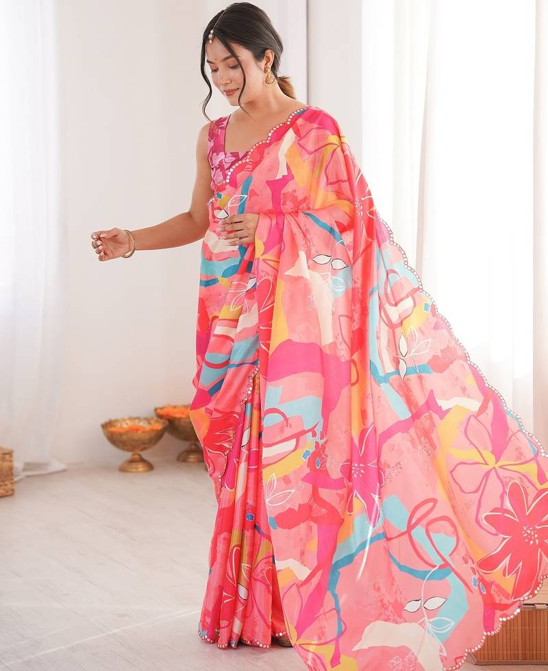 Women party wear digital print heavy chinnon saree with un sttiched blouse