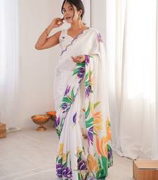 Women party wear digital print heavy chinnon saree with un sttiched blouse