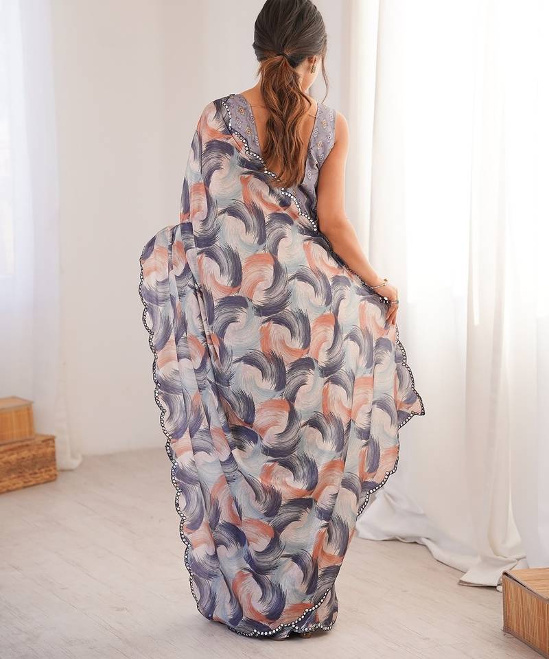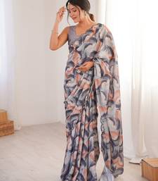 Women party wear digital print heavy chinnon saree with un sttiched blouse